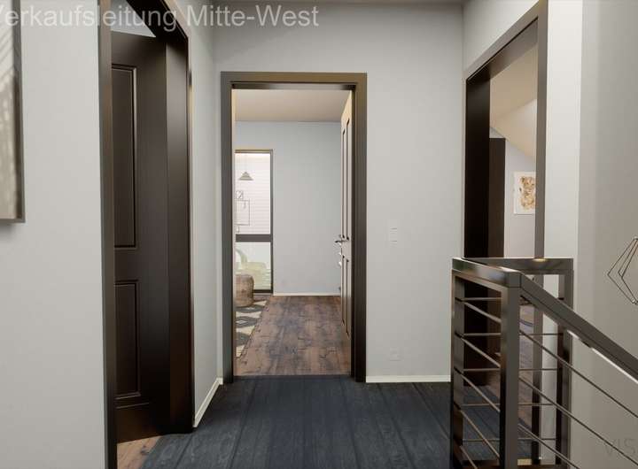 Hier verschmelzen maximale Funktionalität und Ästhetik zu einer harmonischen Einheit. Eines der Highlights ist der komplett ausgebaute Keller, der weit über einen reinen Nutzkeller hinausgeht. Hier befinden sich zwei vielseitig einsetzbare Räume, die Sie z. B. als Hobbyraum oder auch ideal als Spielzimmer nutzen können, sowie ein geräumiger Hauswirtschaftsraum. Über eine halbgewendelte Treppe führt der Weg in das Herzstück des Hauses: den Bereich zum Leben, Kochen und Zusammenkommen. Dazu laden der offene und lichtdurchflutete Koch-Ess-Bereich und das gemütliche Wohnzimmer ein. Hier kann man bei einem Glas Wein den Blick in die Natur schweifen lassen und sich von den Strapazen des Tages erholen. Ebenfalls Parterre: ein geräumiges Büro sowie ein Gäste-WC, beides direkt von der Diele zugänglich. Von hier führt auch die Treppe ins Obergeschoss und damit zum Rückzugsort für die Familienmitglieder. Hier ist ausreichend Platz für das Eltern- und zwei weitere Kinderzimmer. Ein großes Wellnessbad mit Wanne, Dusche und WC rundet das Raumangebot ab. Mehr Wohnen geht nicht.