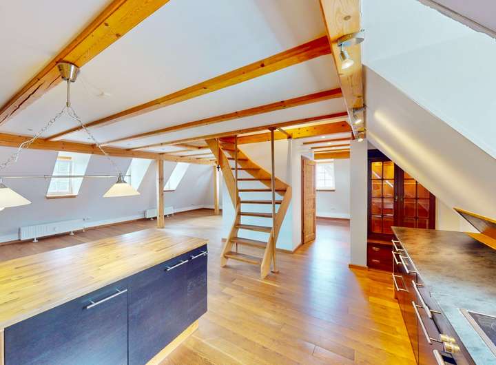 Die neun individuell gestalteten Wohneinheiten verfügen über hochwertige Einbauküchen, moderne Bäder mit Naturstein und massive Eichendielen in den Wohn- und Schlafbereichen. Doppelt verglaste Holzfenster sorgen für eine angenehme Wohnatmosphäre. Der malerische Innenhof zwischen den Häusern steht der Allgemeinheit zur Verfügung lädt zum Beisammensein ein.