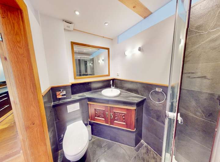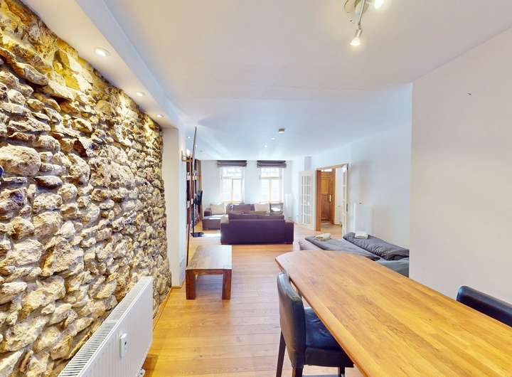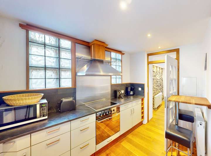 Neun individuell gestaltete Wohneinheiten wurden mit hochwertigen Materialien ausgestattet, darunter massive Eichendielen, freigelegte Holzbalken und Natursteinelemente in den Bädern. Jede Wohnung verfügt über eine moderne Einbauküche, ebenfalls mit Natursteinarbeitsplatten.