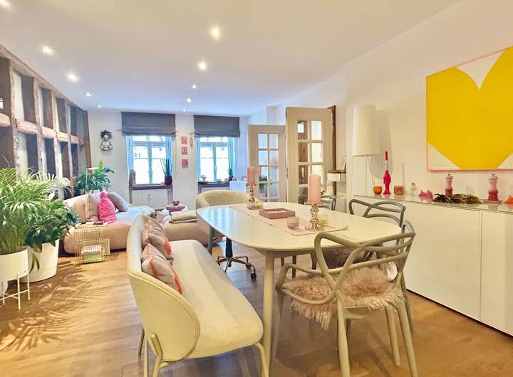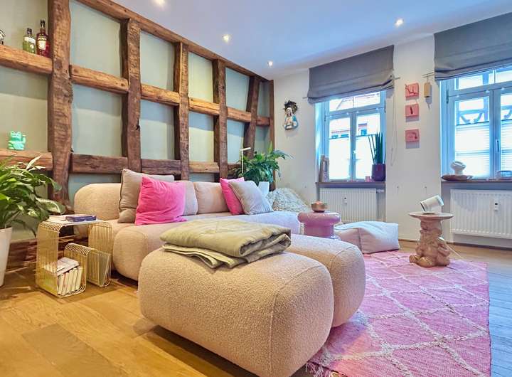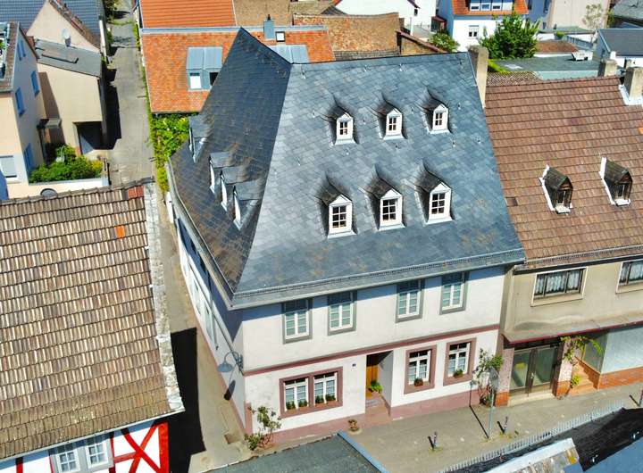 Dieses denkmalgeschützte Ensemble vereint historischen Charme mit modernem Wohnkomfort. Das Anwesen, dessen Haupthaus bis ins Jahr 1500 zurückreicht, wurde zwischen 2009 und 2011 aufwendig kernsaniert. Dabei wurde besonderer Wert auf den Erhalt der historischen Substanz gelegt und mit zeitgemäßen Elementen ergänzt.