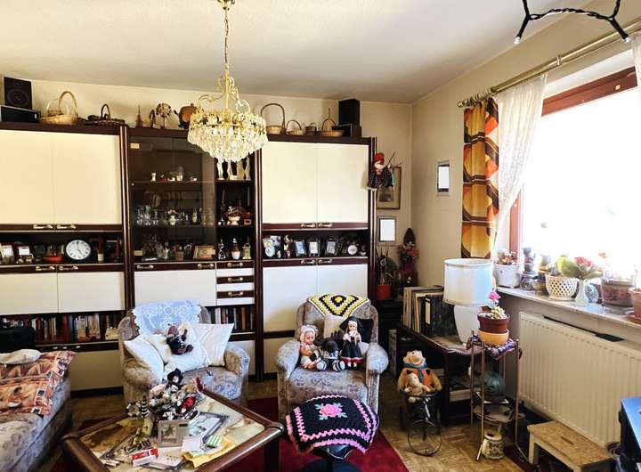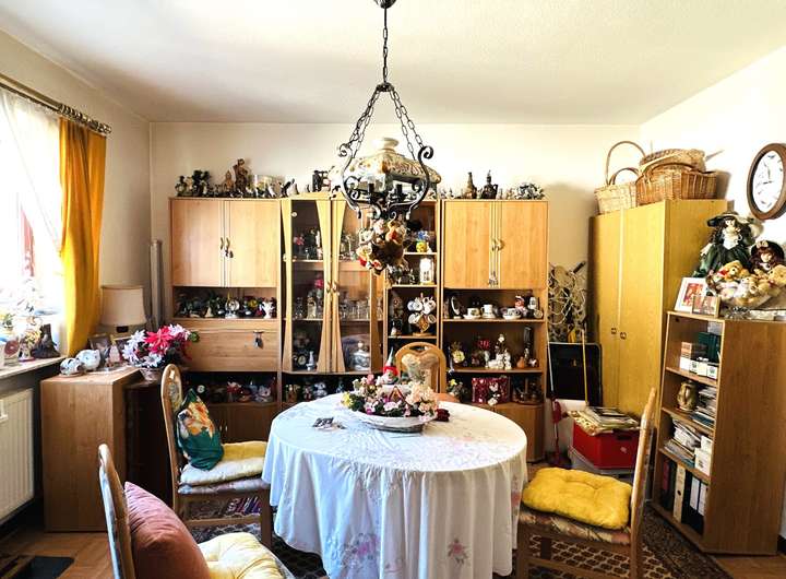 Das OG erreichen Sie über eine schöne Holztreppe. Dort befindet sich eine weitere Wohnung, bestehend aus einer großen Küche, einem Wohnzimmer, einem separatem Esszimmer, einem Schlafzimmer sowie einem Gäste-WC. Im ausgebauten Teil des Dachgeschosses sind zwei große Bäder sowie ein Arbeitszimmer vorhanden. Von dort gelangen Sie auch in den rückwärtigen, zum Hang ausgerichteten Gartenbereich.
