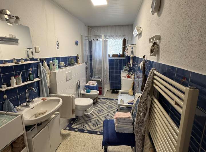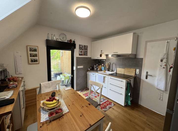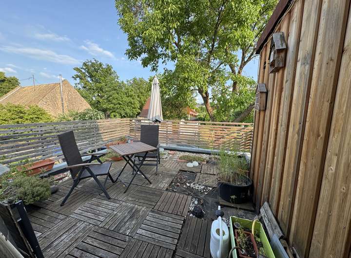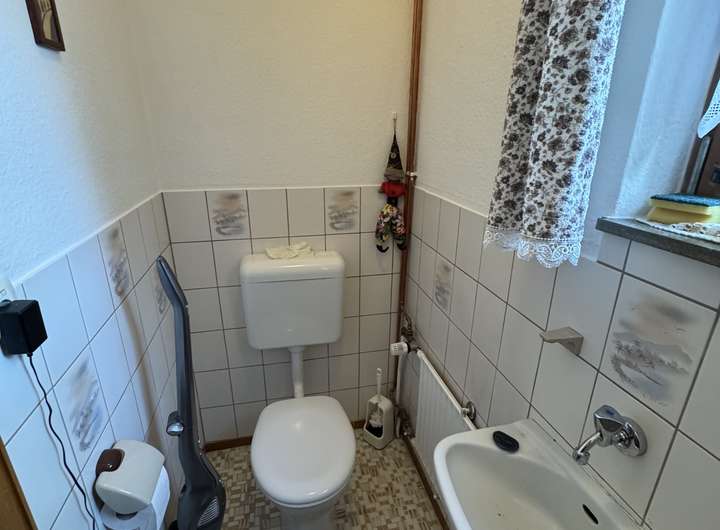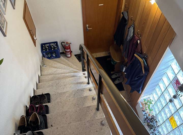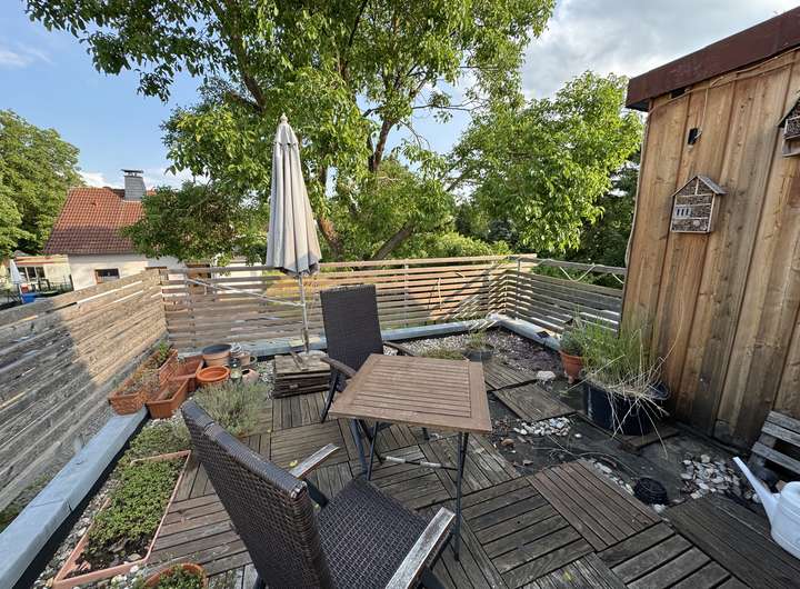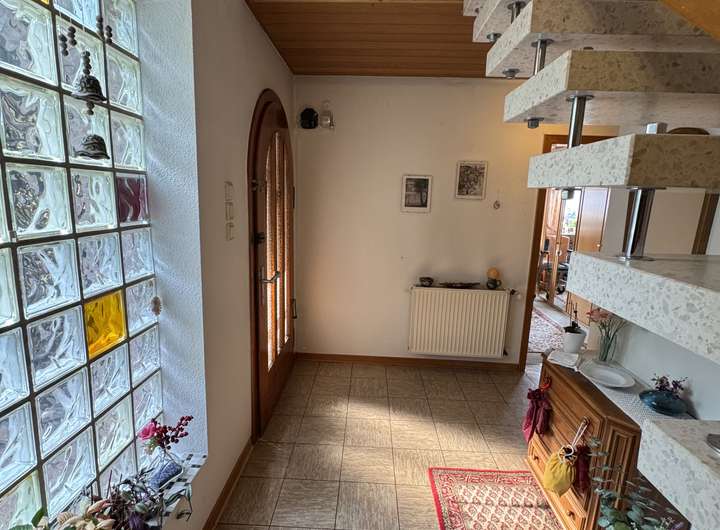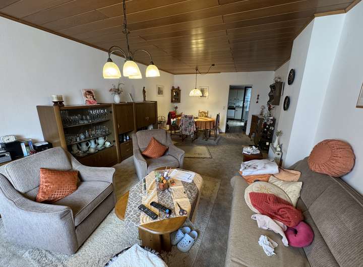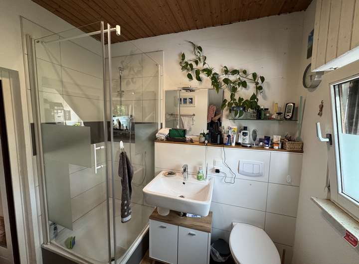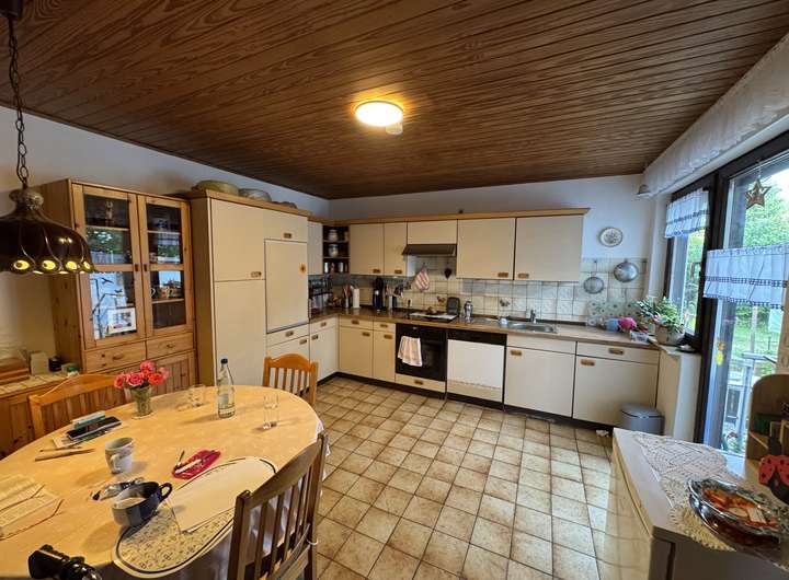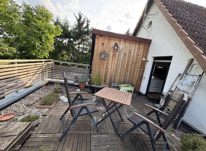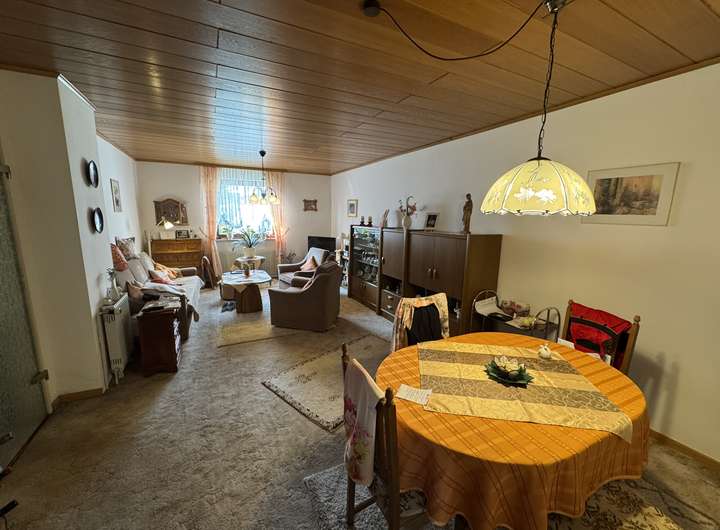 Das freistehende Einfamilienhaus aus dem Jahr 1955 befindet sich in einer guten Lage und ist in ein schönes Wohnumfeld eingebettet. Das großzügige Grundstück von 1159 m² bietet viel Raum für individuelle Gestaltungsmöglichkeiten. Im Erdgeschoss stehen etwa 92 m² Wohnfläche mit einem Schlafzimmer, großem Wohn- und Esszimmer, Küche, Bad und Gäste-WC zur Verfügung. Das Dachgeschoss mit ebenfalls 2 Zimmern, Küche, Bad und einer großen Dachterrasse bietet ca. 54 m² Wohnfläche und viel Platz für kreative Nutzung. Das Haus ist voll unterkellert, was zusätzlichen Stauraum schafft. Im Hof gibt es zwei Garagen sowie bis zu vier Stellplätze, was für ausreichend Parkmöglichkeiten sorgt. Außerdem eröffnet die Größe des Grundstücks die Möglichkeit, im hinteren Bereich mit einer Zufahrt an den Garagen vorbei ein großes, freistehendes Haus zu bauen – ideal für Familien oder Investoren, die noch mehr Raum schaffen möchten.