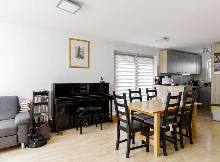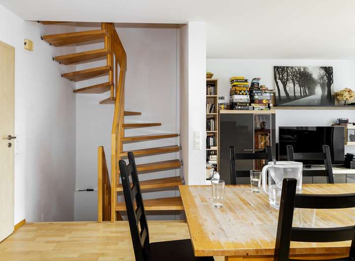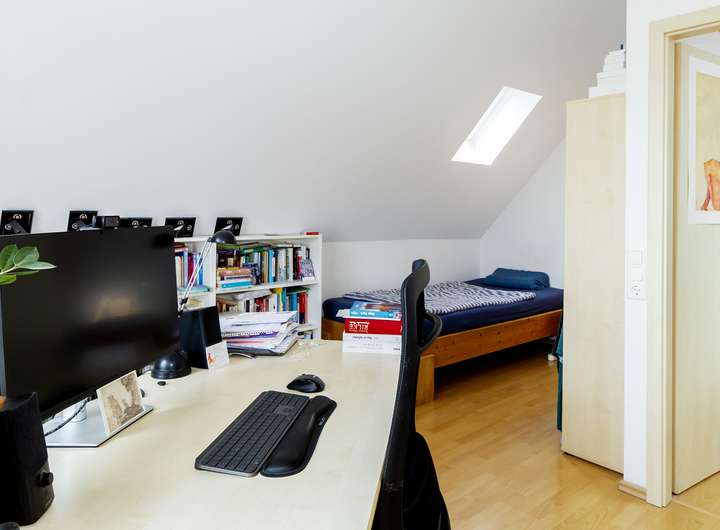 Dieses massiv gebaute Einfamilienhaus aus dem Jahr 2008 befindet sich mit 4 weiteren Häusern auf einem 1049 m² großen Grundstück in einer ruhigen und dennoch zentralen Lage von Mühltal-Trautheim. Die Immobilie bietet 3 Schlafzimmer, 2 Bäder sowie einen großzügigen Wohn- und Essbereich mit Zugang zur Terrasse und einem kleinen Garten. Eine offene Einbauküche ist bereits vorhanden. Im Dachgeschoss befindet sich ein zusätzlicher Studioraum, der sich ideal als Homeoffice oder Hobbyraum nutzen lässt. Bodentiefe Fenster im Wohn- und Essbereich sorgen für lichtdurchflutete Räume und ein angenehmes Wohngefühl. Die Etagen – Erdgeschoss, Obergeschoss und Dachgeschoss – sind durch eine stilvolle Holztreppe miteinander verbunden. Parkmöglichkeiten finden sich beidseitig neben dem Haus. Ein eigener Gartenanteil mit ca. 80 m² umgibt das Haus. Eine Bushaltestelle ist bequem fußläufig erreichbar. Das Haus ist seit 2017 an eine Familie vermietet.