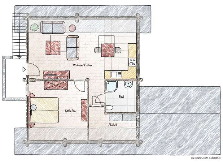 Es gibt auch die Möglichkeit die Wohnfläche im DG über eine Treppe vom Erdgeschoss aus zu erschließen, wenn Sie es komplett als Einfamilienhaus nutzen möchten.