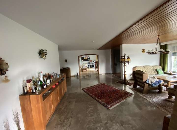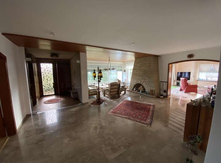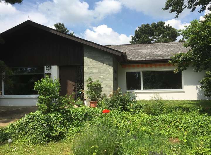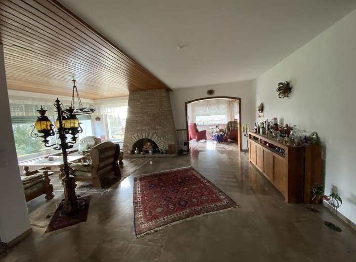 Bungalow auf einer Ebene, ca. 300 Quadratmeter Wohnfläche, 8 Zimmer plus 1 Bad, 1 Gäste-WC, 2 Küchen, offener Kamin, 2 Garagen