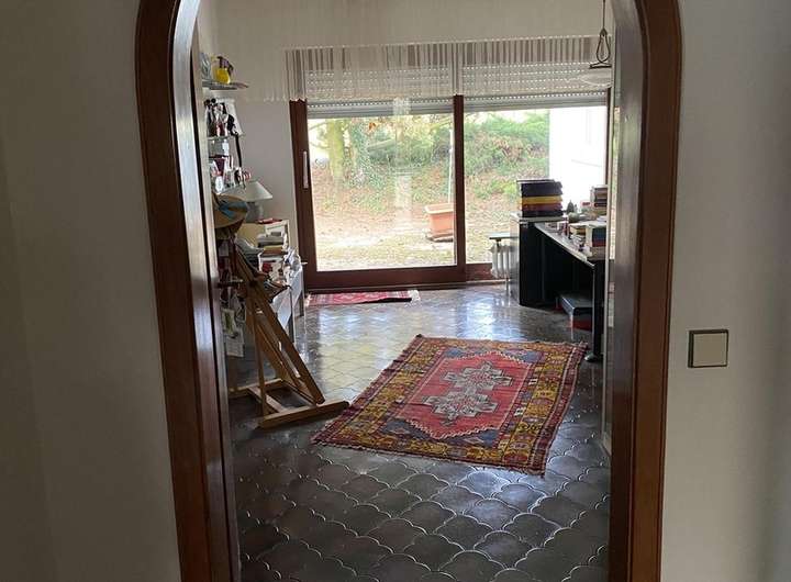 2 x 50 Quadratmeter repräsentative Räume mit seit 2015 dreifach verglasten Panoramafenstern, eine große Empfangsdiele mit offenem Kamin, eine große Küche mit Speisekammer und Terrassenausgang, separates Arbeitszimmer, 3 Schlafzimmer, Bad und Gäste-WC sowie eine ebenerdige kleine Einliegerwohnung bieten Platz für eine große Familie oder großzügiges Wohnen.