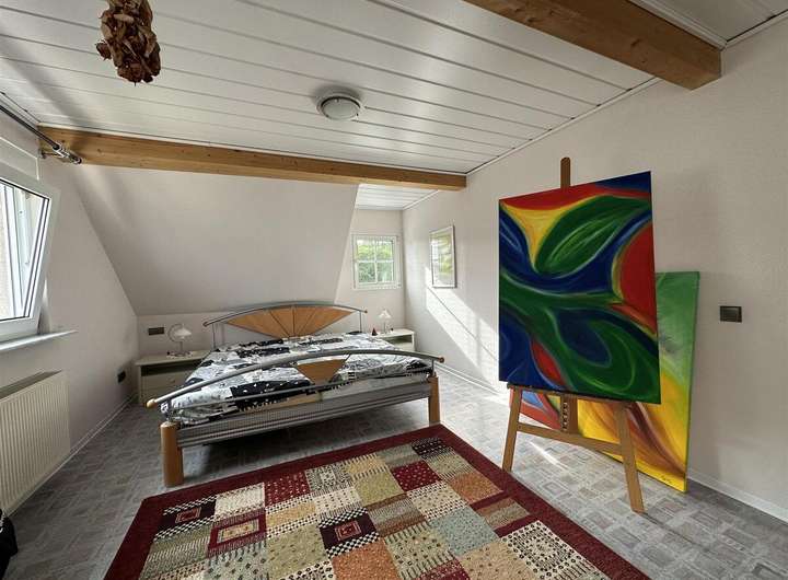Im Obergeschoss befinden sich 3 Schlafzimmer und ein großes Badezimmer, sowie ein großer Balkon.