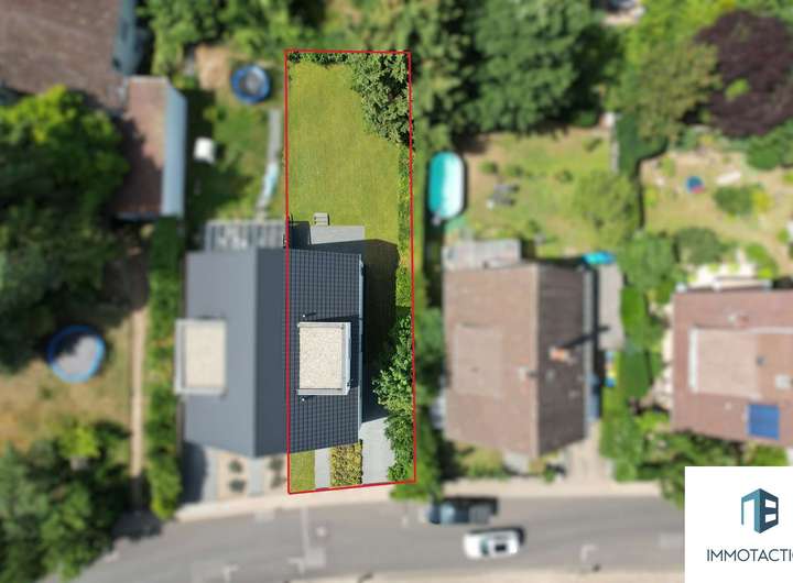 Das Grundstück verfügt über einen großzügigen, ebenerdigen Garten mit sonniger Ausrichtung. Er bietet vielfältige Nutzungsmöglichkeiten – etwa zum Spielen, Entspannen oder für gärtnerische Gestaltung - hier lässt sich Ihr eigenes Poolprojekt verwirklichen.
