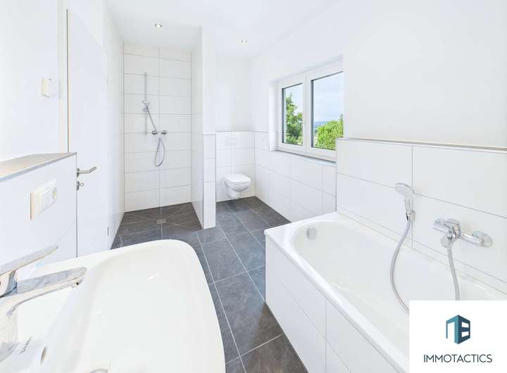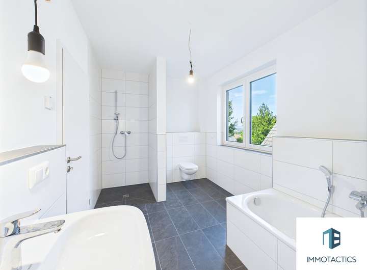 - 2 Tageslichtbäder mit Badewanne und begehbarer Dusche