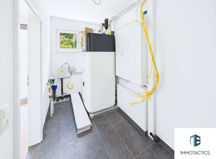 Hauswirtschaftsraum mit Technikanschlüssen und Anschlüssen für Waschmaschine und Trockner