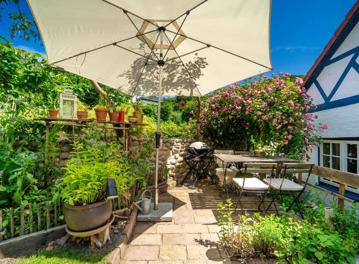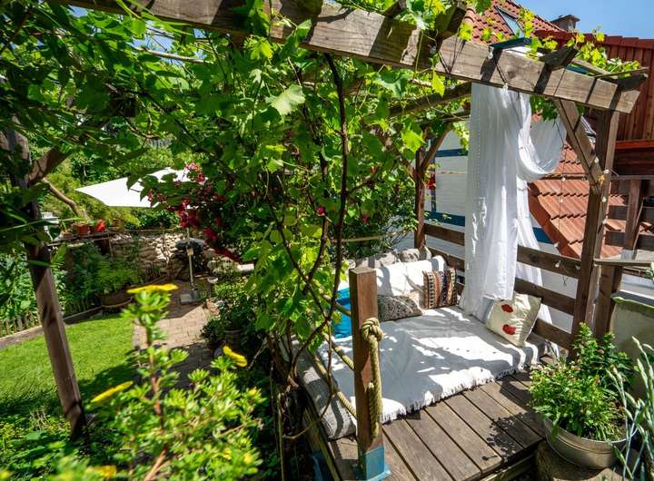 Ein besonderes Highlight ist der romantische Bauerngarten, der das Haus an zwei Seiten umgibt. Mit viel Sorgfalt und kreativer Fantasie gestaltet, wurde auch hier das volle Potenzial genutzt. Insgesamt stehen Ihnen fünf Terrassen zur Verfügung, um die Sonne zu jeder Tageszeit zu erleben und die schöne Aussicht von verschiedenen Blickwinkeln aus zu erleben.