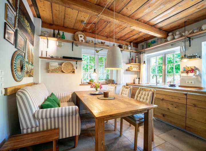 Lehmverputze Innenwände, großflächige italienische Steinplatten, massive Holzböden, handgefertigte Fenster, - kombiniert mit modernster Haustechnik, natürlichen Dämmstoffen, und hochwertiger Ausstattung. Jedes Detail erzählt eine Geschichte, jedes Element wurde mit Blick auf Authentizität und Nachhaltigkeit ausgewählt. Individuell. Stilvoll. Einmalig.
