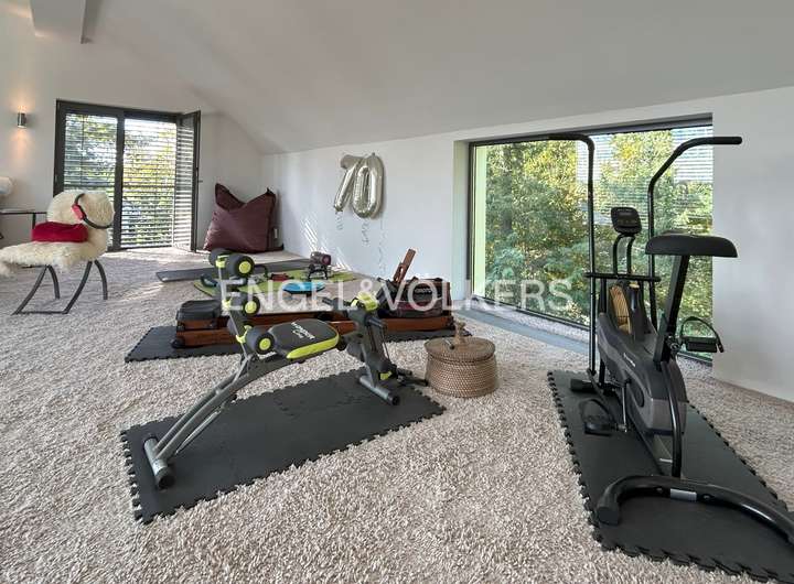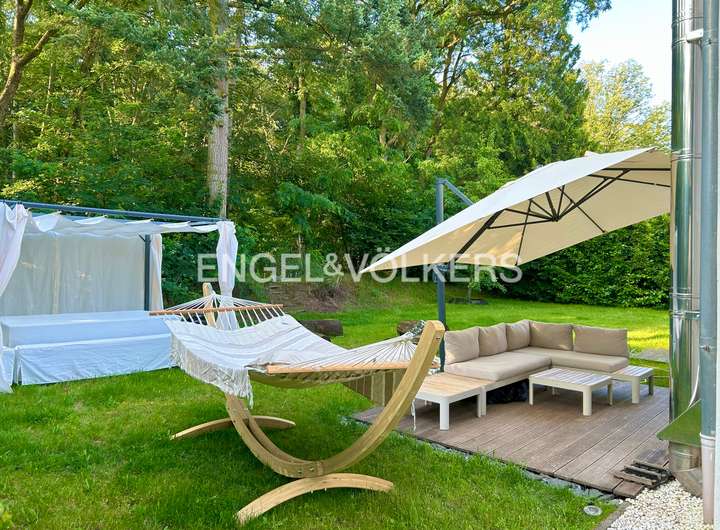 Die Lage in einer ruhigen Anliegerstraße direkt am Waldrand bietet maximale Privatsphäre. Ein privater Zugang führt direkt auf den Waldweg – ideal für Spaziergänge und sportliche Aktivitäten. Auf dem hinteren Grundstücksteil befindet sich zudem ein älteres Nebengebäude mit ehemaligem Schwimmbad, das sich als Wellnessbereich, Atelier, Poolhaus oder Gartenhaus neu gestalten lässt.