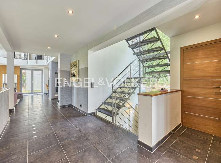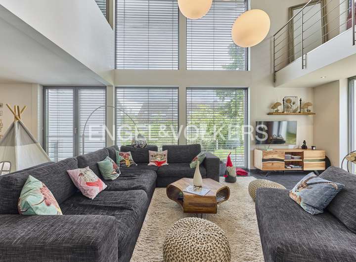 In absoluter Toplage am ruhigen Ortsrand von Mühltal-Traisa, unmittelbar am Waldrand, präsentiert sich dieses außergewöhnliche Anwesen mit einer beeindruckenden Kombination aus Großzügigkeit, technischer Raffinesse und stilvoller Wohnqualität. Die Immobilie erstreckt sich über vier Etagen und bietet auf ca. 425 m² Wohnfläche sowie 1.429 m² Grundstück ein Zuhause der Extraklasse – mit dem seltenen Potenzial, mehrere eigenständige Wohneinheiten zu schaffen. Das Anwesen richtet sich an Menschen, die das Besondere, Naturverbundenheit und nachhaltige Wohnqualität schätzen.