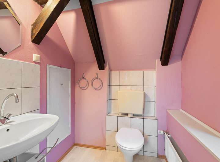 Im Obergeschoss bieten mehrere Zimmer mit zwei Bäder und ein WC viele Gestaltungsmöglichkeiten zu einer Zweitwohnung.