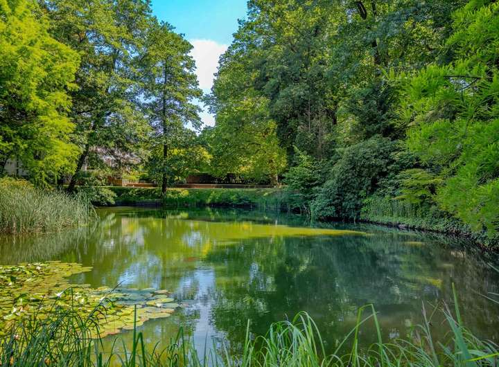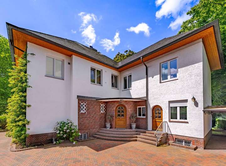 Diese Villa von 1931 bietet ein außergewöhnliches Wohnambiente direkt am Ufer eines privaten Sees. Auf einem ca. 2.941 m² großen, parkähnlichen Grundstück mit altem Baumbestand genießen Sie höchste Privatsphäre und eine seltene Kombination aus Natur, Exklusivität und Wohnkomfort.