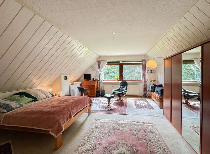 Im Erdgeschoss wartet ein Wohnzimmer mit Kaminofen auf Euch – perfekt für gemütliche Familienabende. Die Küche ist mit dem Esszimmer mit Blick in den Garten verbunden. Ein Duschbad sowie ein praktischer Hauswirtschaftsraum machen das Erdgeschoss komplett. Im Dachgeschoss befinden sich zwei Schlafzimmer – ideal für Eltern und Kinder – sowie ein Badezimmer mit Wanne, in dem Ihr nach einem langen Tag zur Ruhe kommen könnt. Im großen Garten ist Platz für alles, was Familien lieben: Toben, gärtnern, entspannen. Das Gartenhaus bietet Stauraum oder wird zum Spielhäuschen. Zwei Garagen und eine kleine Werkstatt runden das Angebot ab.
