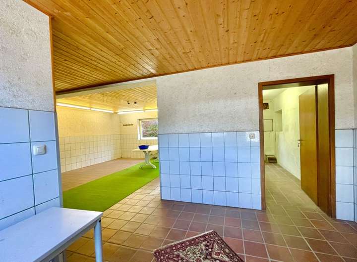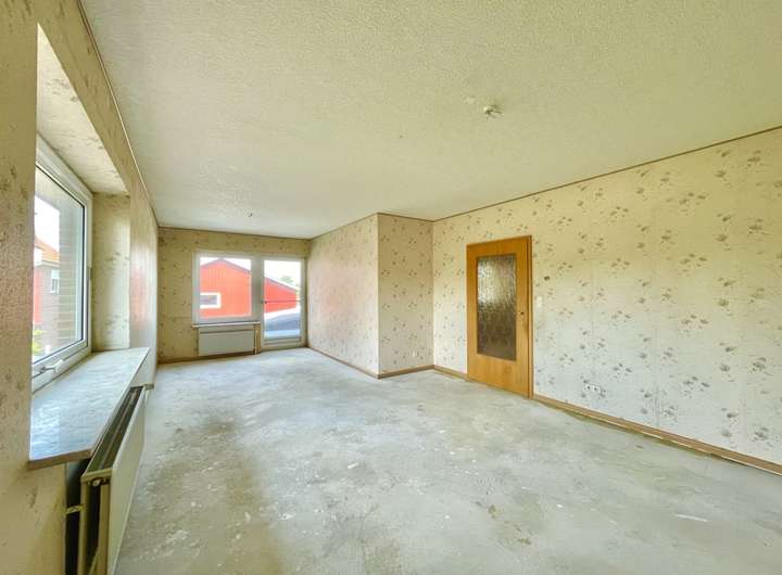Die Immobilie (Grundstück im Eigentum – kein Erbbaurecht) befindet sich in einem sanierungsbedürftigen Zustand – bietet jedoch mit ca. 97 m² Wohnfläche auf zwei Ebenen und insgesamt vier gut geschnittenen Zimmern eine solide Basis, um ein behagliches Zuhause für Paare oder kleine Familien zu schaffen. Besonders hervorzuheben ist die vielseitige Nutzungsmöglichkeit der ehemaligen Betriebsräume im Erdgeschoss (ehemals Kühlraum und Binderaum, Deckenhöhe ca. 2,40 m). Diese Flächen lassen sich ganz nach Ihren Vorstellungen gestalten – beispielsweise als Werkstatt, Hobbyraum, Büro oder Technikbereich.