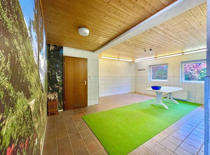 Es folgt ein individuelles Immobilienangebot in ruhiger und grüner Lage: Dieser im Jahr 1984 errichtete Anbau vermittelt den wohnlichen Charakter eines Einfamilienhauses und überzeugt mit einem durchdachten Grundriss, großem Potenzial und einem außergewöhnlichen Extra – einem großzügigen, ca. 600 m² großen Garten, der als Pachtfläche zu diesem Objekt gehört. Hier lassen sich naturnahe Wohnträume verwirklichen: Ob Selbstversorgung mit eigenem Gemüse, Spielbereich für Kinder oder ein stilvoller Rückzugsort im Grünen – Ihrer Kreativität sind keine Grenzen gesetzt.