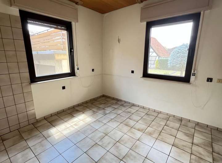 Im Erdgeschoss des Hauptgebäudes befindet sich eine 3-Zimmer-Wohnung, Küche, Bad und einem Abgang zum Garten.