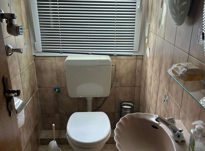 Die Eigentümer wohnen derzeit im EG und der 1.OG ist vermietet.