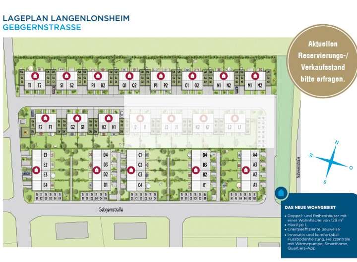 In Langenlonsheim entstehen im 2. Bauabschnitt 10 attraktive Doppelhäuser im energiesparsamen KfW-55-Effizienzhaus-Standard.
