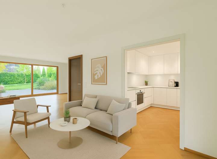 Mit ca. 198 m² Wohnfläche bietet das Haus viel Raum für Familien, Kreative oder alle, die großzügig wohnen und sich verwirklichen möchten. Die großen Fensterfronten sorgen für eine helle, freundliche Atmosphäre und eröffnen einen weiten Blick in den grünen Garten und die umliegende Natur und die Weinberge.