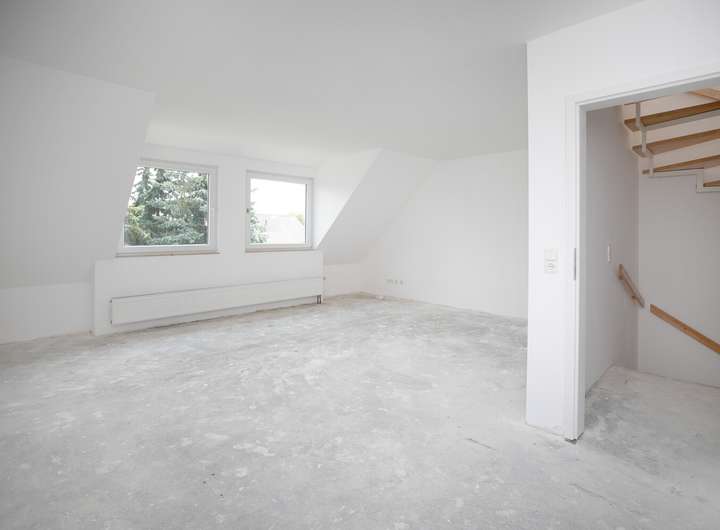 Besonders praktisch ist, dass in den oberen Etagen derzeit noch kein Bodenbelag verlegt ist. So haben Sie die Möglichkeit, Ihre Wohnträume ganz nach eigenem Geschmack zu verwirklichen.