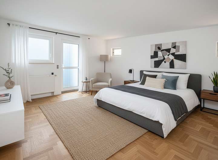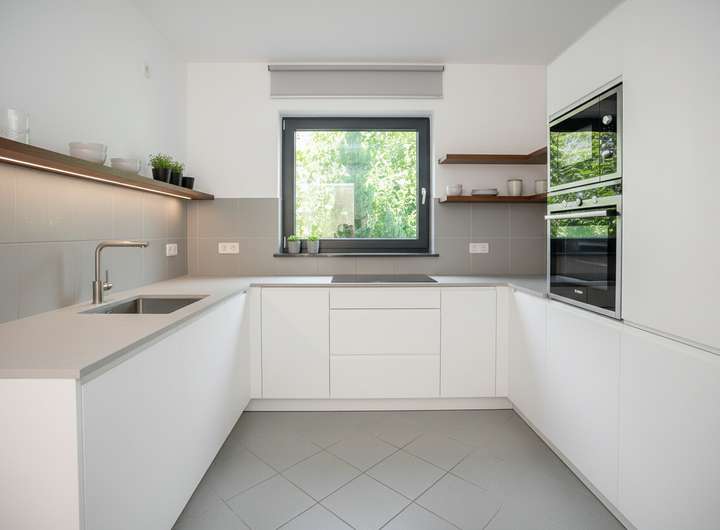 Im Erdgeschoss bildet der offene Wohn- und Essbereich das Herzstück des Hauses. Große Fenster lassen viel Tageslicht herein und schaffen eine helle, freundliche Atmosphäre. Der hochwertige Parkettboden sorgt für ein warmes, wohnliches Ambiente – ideal für gemütliche Stunden mit der Familie.