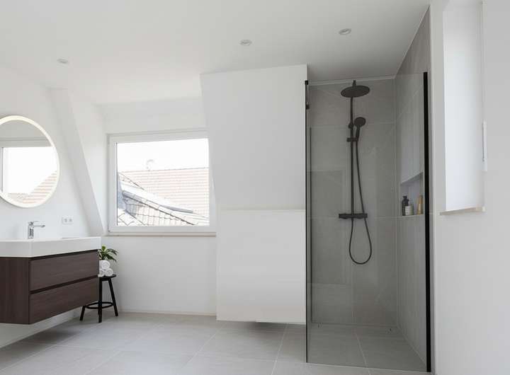 Das zweite Obergeschoss punktet mit einem besonders großen Raum, der sich wunderbar als Elternschlafzimmer eignet. Hier wird derzeit ein modernes Tageslichtbad mit Badewanne, Dusche, Toilette und Waschtisch vorbereitet. Die Installationen sind bereits in Arbeit – ein komfortabler Elternbereich entsteht, der den Alltag mit Kindern noch entspannter macht.