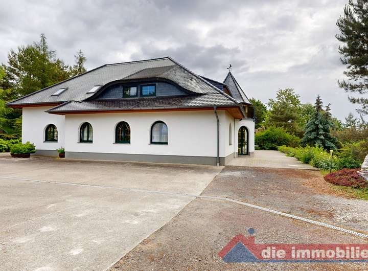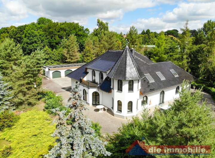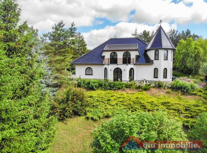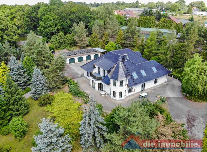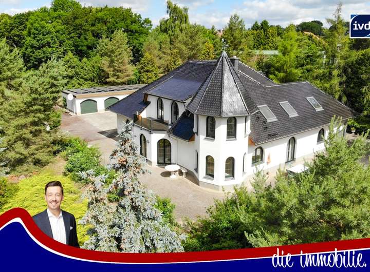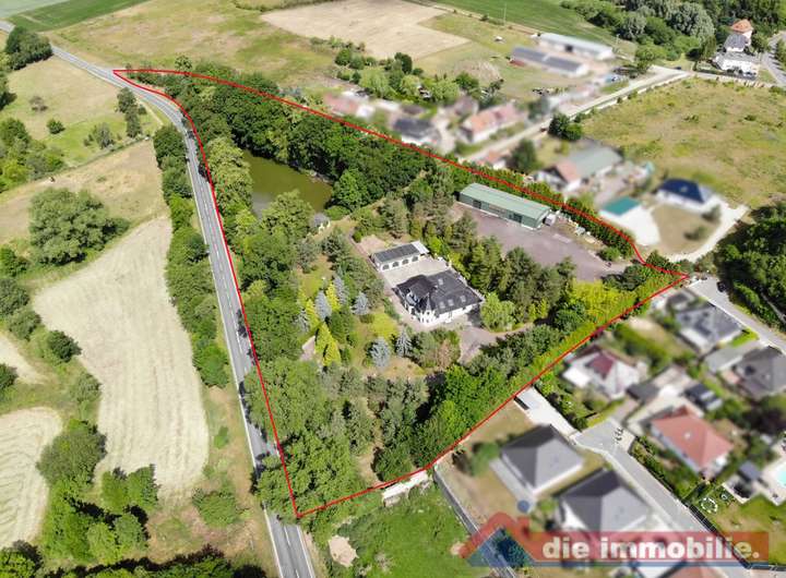Auf einem Hügel gelegen, mit weitem Blick, eingebettet in eine weitläufige Parklandschaft, präsentiert sich diese beeindruckende Villa. Auf einem rund 20.000 m² großen Grundstück vereint das Anwesen repräsentatives Wohnen, Privatsphäre, Naturverbundenheit und luxuriöse Architektur – gekrönt von einer privaten Badeanstalt mit separatem Gartenhäuschen am Ufer.