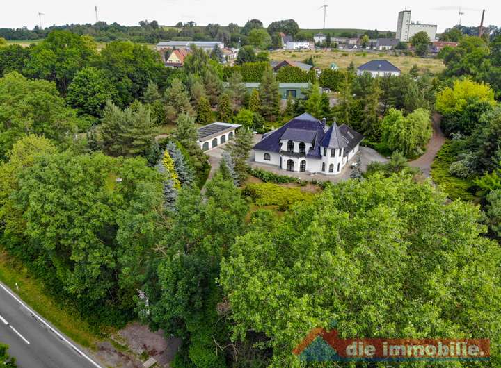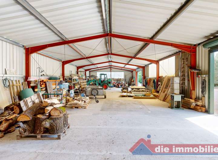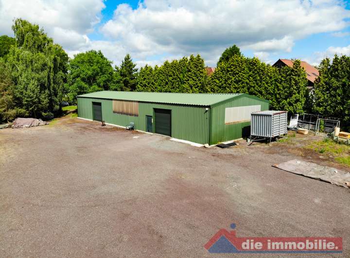 Neben dem Hauptgebäude befindet sich ein gepflegter Garagenkomplex mit vier nebeneinanderliegenden Garagen. Hinter dem Haus erstreckt sich eine großzügige Lagerhalle samt enormer Freifläche - ideal für Unternehmer und Sammler.