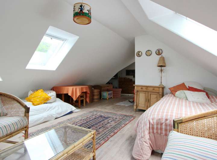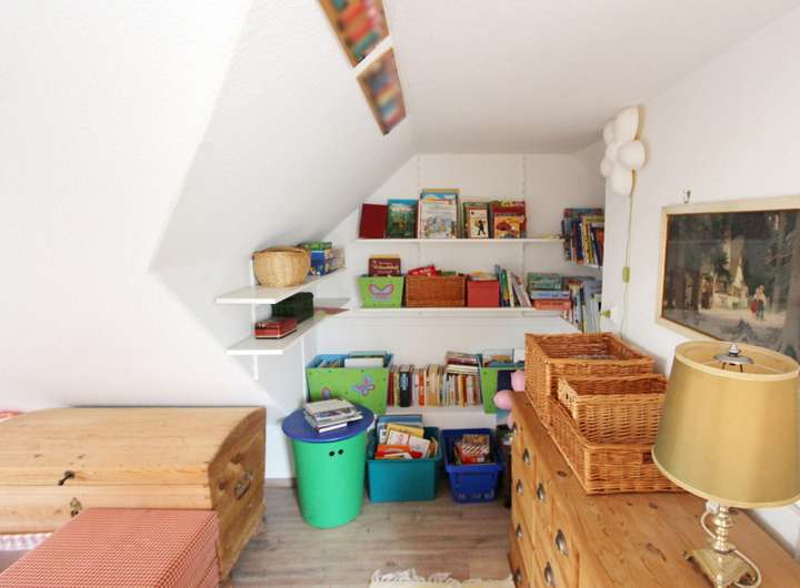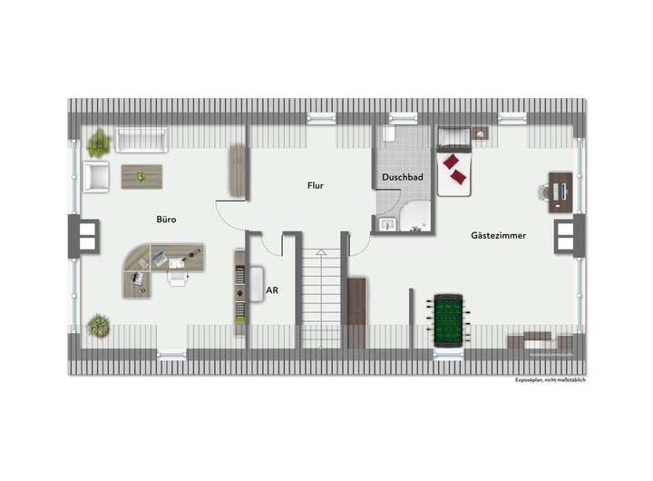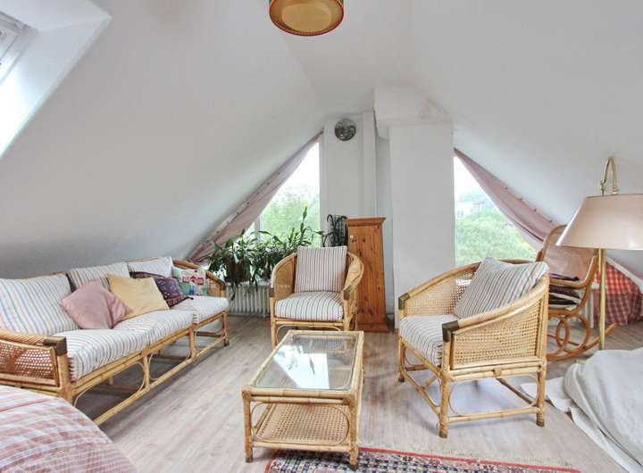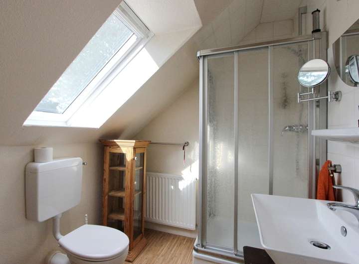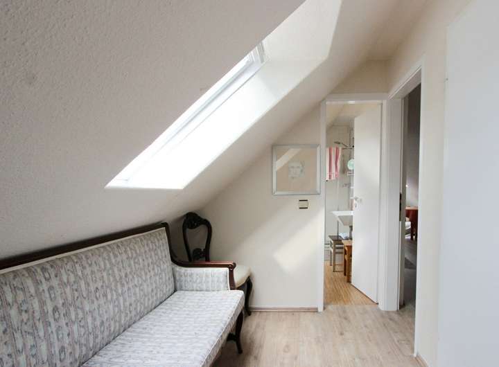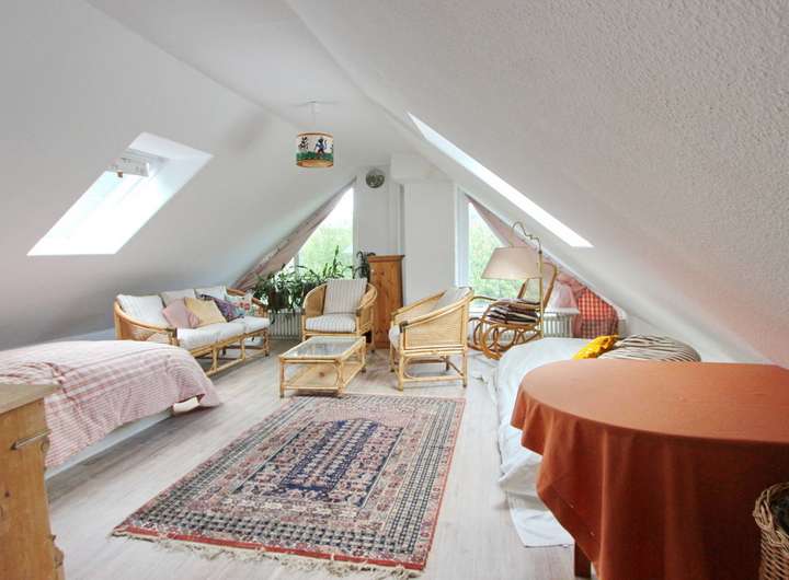 Das ausgebaute Dachgeschoss (aktuell in Prüfung zur Wohnflächenanrechnung) bietet zwei helle Räume mit Giebelfenstern und Dachflächenfenstern sowie ein weiteres Duschbad.