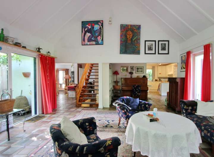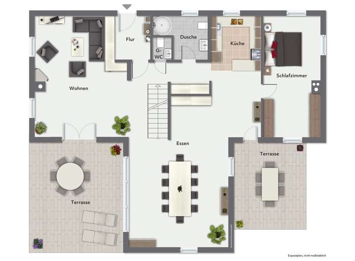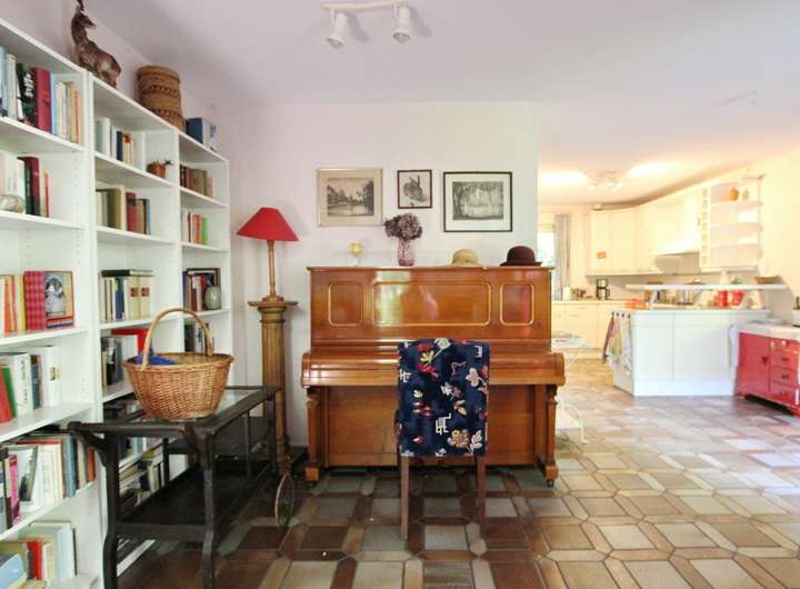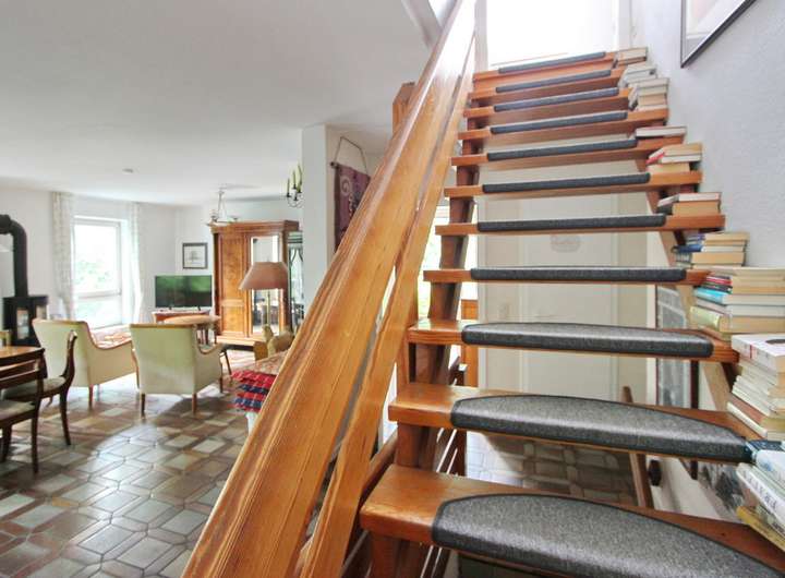 Das Haus überzeugt durch einen besonderen Grundriss mit offen gestaltetem Wohn-, Ess- und Küchenbereich. Durch die klare Aufteilung entstehen zugleich Rückzugsorte und gemeinschaftliche Räume. Große Fenster, teils bodentief, sorgen für viel Licht und schaffen eine Verbindung zum Garten. Die überdurchschnittliche Deckenhöhe im Wohn-/Essbereich unterstreicht den individuellen Charakter.