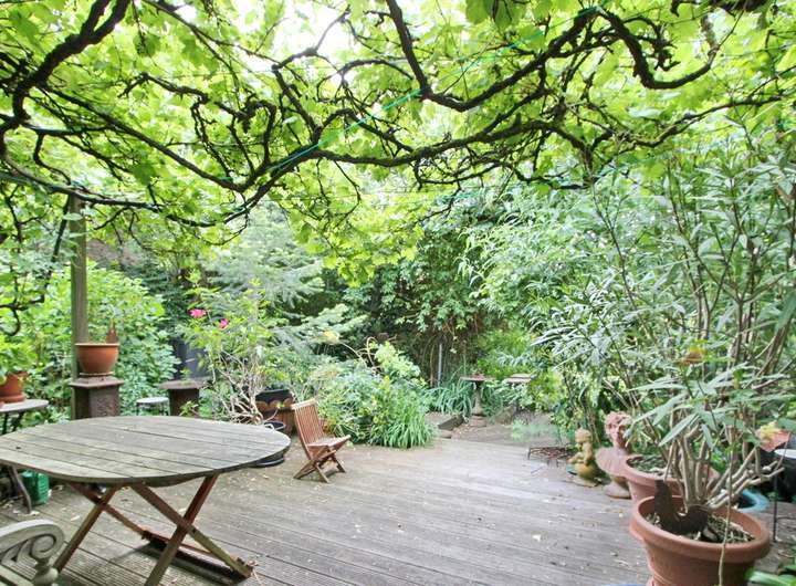 Der Garten ist ein kleines Paradies mitten in der Stadt – mit Flieder, Rosen, Hortensien, Obstbäumen (u. a. Kirsche, Marone, Mirabelle) sowie Kräutern und Frühjahrsblühern. Drei Terrassen – je nach Sonnenstand – bieten ideale Rückzugsorte zum Entspannen, Gärtnern oder Genießen.