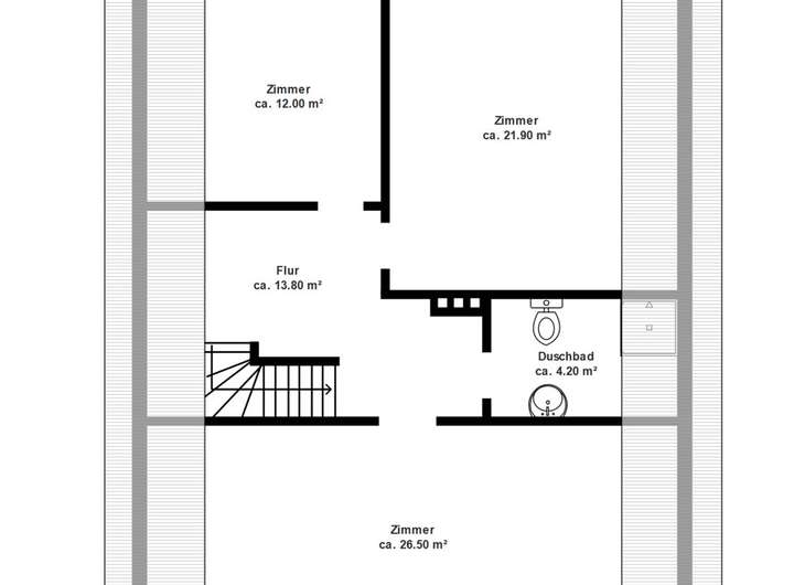 Mit einer Wohnfläche von ca. 180 m² bietet das Haus ausreichend Raum für alle, die viel Platz und ein großzügiges Zuhause suchen. Die durchdachte Raumaufteilung umfasst sechs Zimmer. Über einen Windfang gelangen Sie in die Immobilie. Im Erdgeschoss stehen Ihnen, neben dem großzügigen Wohnzimmer, zwei weitere Zimmer sowie die Küche mit Essplatz und ein Badezimmer zur Verfügung. Die Terrasse ist sowohl vom Wohnzimmer als auch von der Küche begehbar. Über eine offene Holztreppe gelangen Sie in das Dachgeschoss. Hier bieten Ihnen drei weitere Zimmer sowie ein Duschbad viele Gestaltungsmöglichkeiten. In einem Zimmer befinden sich bereits Anschlüsse für eine zweite Küche.
