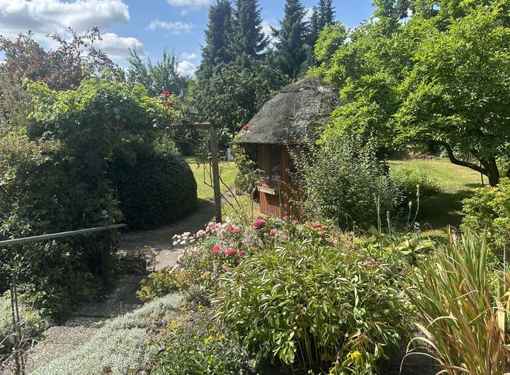 Des Weiteren stehen Ihnen eine Garage mit einem angrenzendem Schuppen und ein Gartenpavillon zur Verfügung.