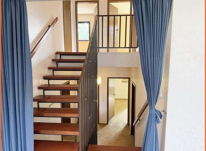 Ein halbe Etage nach oben gibt es 3 Schlafzimmer und ein Tageslichtbad. Eine halbe Etage nach unten finden Sie 2 weitere Zimmer und ein Duschbad, sowie Vorrats-und Hauswirtschaftsräume.