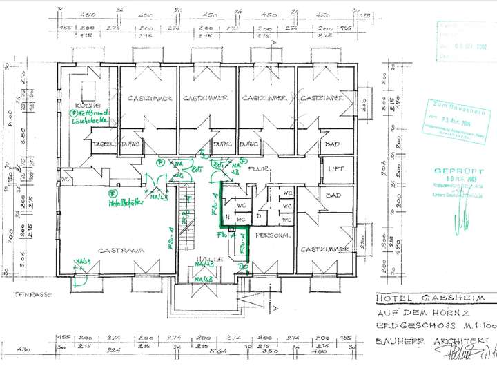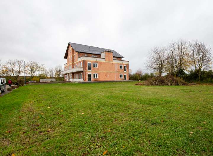 Der Rohbau wurde bereits komplett erstellt, inklusive der Installation von Fenstern mit Dreifachverglasung. Im Erdgeschoss sind die elektrischen Installationen bereits abgeschlossen. Hier befinden sich fünf Doppelzimmer mit eigenem Badezimmer, ein großzügiger Gastraum mit angrenzender Küche, ein Personalraum sowie separate WC-Anlagen für Gäste und Mitarbeiter. Zudem ist ausreichend Fläche für eine gastronomische Nutzung mit einer Sommerterrasse vorhanden. Ergänzend gibt es fünf Apartments mit eigener Terrasse oder Balkon sowie eine Gewerbefläche für die Küche.