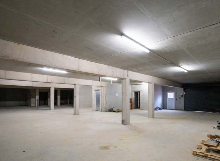 Tiefgarage mit verlegter Elektrik und installiertem Rolltor