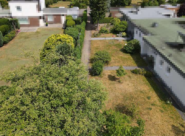 Das Grundstück erstreckt sich über eine Fläche von ca. 691qm und liegt in West-Ausrichtung. Es ist von viel Grün umsäumt und ein hübscher Baumbestand ziert den Garten.