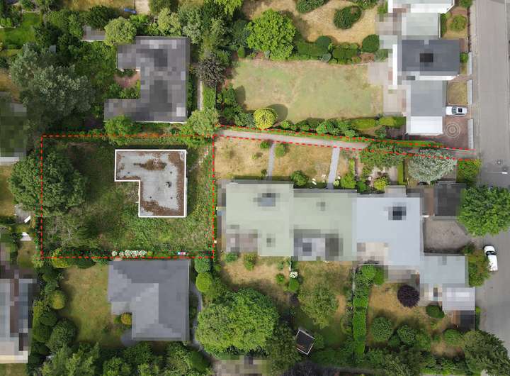 Zudem liegt eine Baugenehmigung für ein Doppelhaus im klassischen Bauhausstil mit ca. 300 qm Wohnfläche vor.