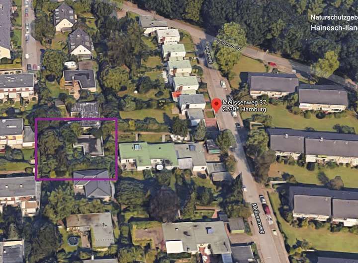 Durch die rückwärtige Lage ist das Grundstück nicht direkt mit dem Auto anfahrbar, jedoch bietet der Melissenweg ausreichend Parkmöglichkeiten für Bewohner und Gäste.