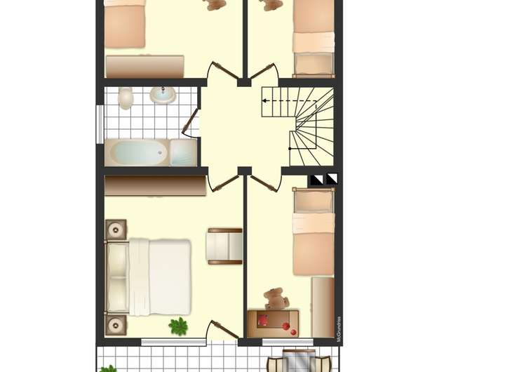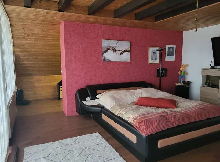 Das Haus bietet insgesamt sechs Zimmer, darunter fünf gemütliche Schlafzimmer/ Kinderzimmer, die ausreichend Platz für die ganze Familie gewährleisten. Das moderne Tageslichtbad mit begehbarer Dusche sorgt für zusätzlichen Komfort. Der stilvolle Kamin im Wohnzimmer schafft eine einladende Atmosphäre, ideal für entspannte Abende. Genießen Sie sonnige Tage auf der Terrasse oder dem Balkon, und für Wellnessliebhaber steht eine private Sauna mit Ruheraum und ebenerdiger Dusche bereit.