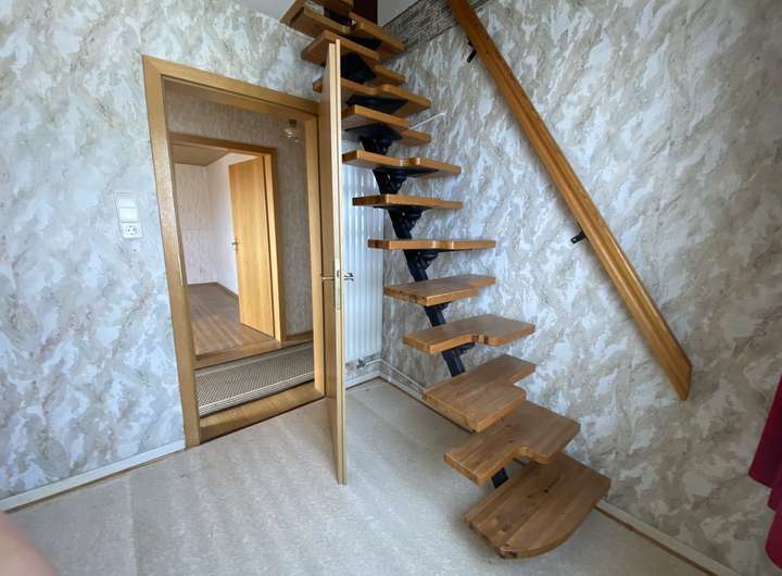 - Dachgeschoss: drei Zimmer, Küche, Bad, Balkon