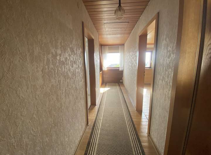 Im Erdgeschoss befinden sich drei Zimmer, eine separate Küche mit Einbauschränken sowie ein Badezimmer. Vom Wohn- und Essbereich aus gelangt man auf den sonnigen Balkon in Südwest-Ausrichtung - mit elektrischer Markise ausgestattet, lädt er zu entspannten Stunden am Nachmittag und Abend ein. Im Obergeschoss warten fünf weitere Zimmer sowie ein zweites Bad darauf, mit Leben gefüllt zu werden.