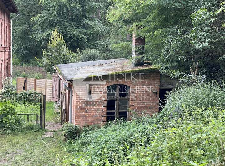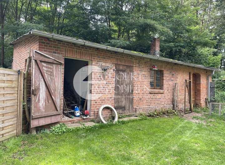 Das ehem. massive Toilettenhäuschen wird jetzt als "Hundehaus" mit Auslauf genutzt. Des Weiteren steht ein Gebäude mit Werkstatt und Holzlagerung zur individuellen Freizeitgestaltung zur Verfügung.