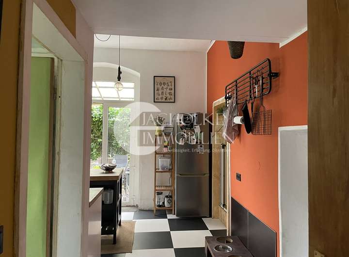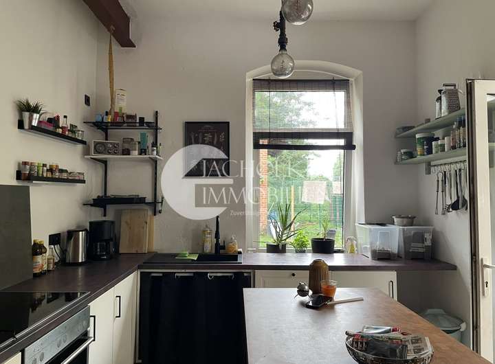 Die geräumige Einbauküche ist perfekt für kulinarische Erlebnisse und ermöglicht den Komfort von praktischen Arbeitsabläufen. Ursprüngliche Dielen und Fliesenböden unterstreichen den rustikalen Charakter des Hauses und verleihen ein besonderes Ambiente. Zudem sorgt ein Kamin für wohlige Wärme und gemütliche Stunden.