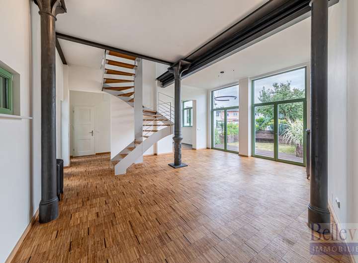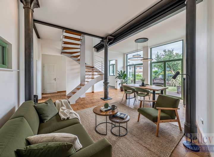 Lichtdurchflutetes Loft-Haus mit 4,50 Meter hohen Decken, Gusseisensäulen, Garten und Sauna