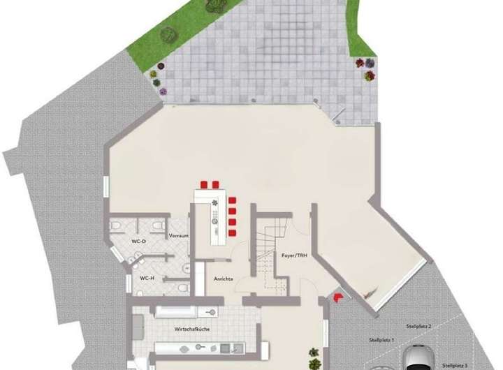 Insgesamt ein beachtliches Raumangebot. Wem dies nicht ausreicht, kann über eine Umnutzung im Erdgeschoss nachdenken. Diese Fläche kann entweder für sich, also als Einliegerwohnung für Familienmitglieder genutzt werden, die einen eigenen Bereich wünschen, oder als Erweiterung der Flächen der Hauptwohnung.